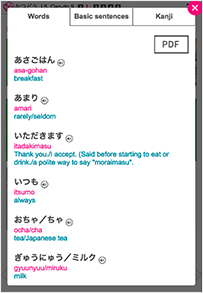 Besides the content of the lesson being studied, you can refer anytime to the meaning and explanation of words, basic sentences and kanji to be studied in the lesson, so that you can immediately look up anything you do not understand.